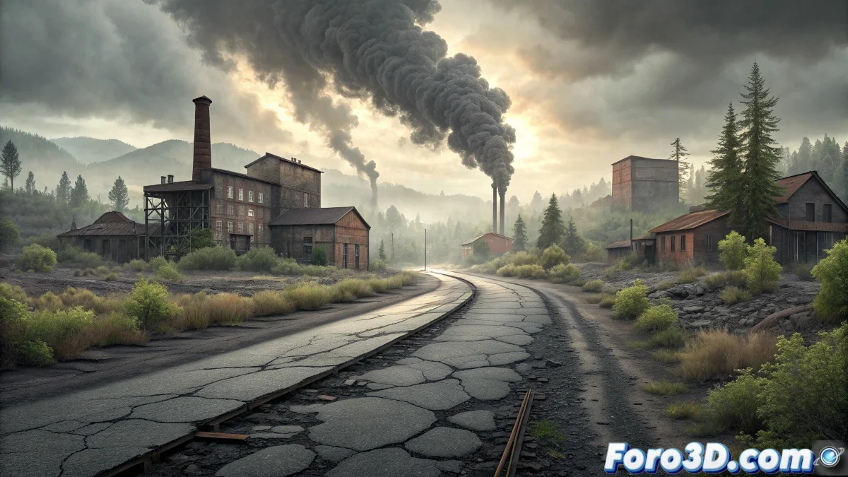 Para recrear Centralia en 3ds Max, comenzamos modelando un terreno montañoso con herramientas como Displace o Noise aplicadas a un plano subdividido, simulando las colinas de Pensilvania. Añadimos texturas de asfalto agrietado con mapas de bump y displacement para crear las grietas realistas por donde escapa el humo.