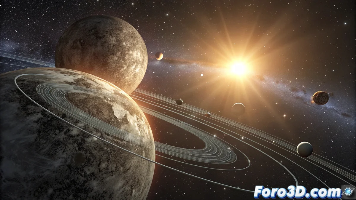 Asigna diferentes colores mediante Style / Color para distinguir los elementos celestes: amarillo intenso para el Sol, gris para Mercurio, azul para la Tierra y líneas tenues para las órbitas. Ajusta el tamaño relativo de los cuerpos con Constraint / Diameter, manteniendo proporciones visualmente reconocibles aunque no a escala real. Activa View / Shaded para visualizar los planetas como esferas sólidas en lugar de simples contornos, mejorando la comprensión tridimensional del fenómeno.