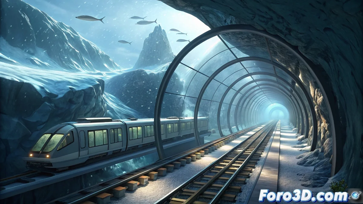Comienza trazando la línea central del túnel usando polilíneas que sigan la topografía del lecho marino. Emplea el comando EXTRUIR para crear la sección transversal del túnel, considerando un diámetro interno de aproximadamente 12 metros para doble vía ferroviaria. Utiliza operaciones booleanas para unir los segmentos del túnel. Modela las estaciones intermedias en las islas Diómedes usando primitivas sólidas y operaciones de corte. Incluye cámaras de emergencia y sistemas de ventilación cada 500 metros usando matrices rectangulares.