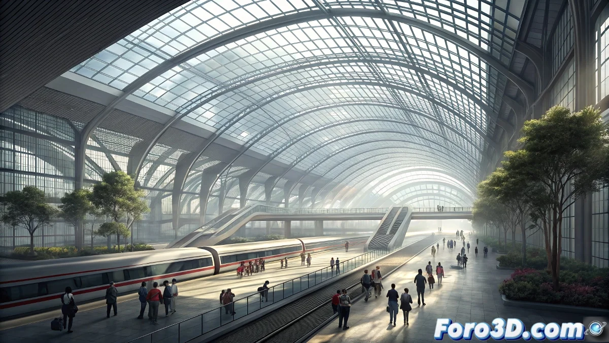 Configura un sistema de iluminación HDRI para iluminación ambiental natural, complementado con luces de Área estratégicamente posicionadas para simular la iluminación interior de la estación. Para los materiales, desarrolla un shader Principal BSDF complejo para las superficies de vidrio de la fachada, combinando transmisión con rugosidad controlada por texturas. Crea materiales metálicos para las estructuras de soporte utilizando el nodo Principled BSDF con alta metalicidad y reflectividad ajustada. Implementa nodos de textura procedural para simular patrones arquitectónicos y evitar la repetición visible en superficies extensas.