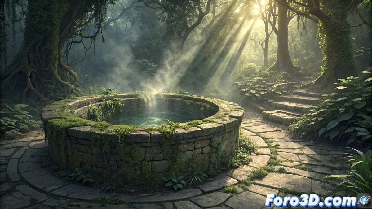 Para simular el efecto místico del agua, aplica un modificador Volumetric Light al volumen líquido con tonos verde azulados sutiles. Crea partículas de vapor ascendente desde la superficie usando el sistema Particle Flow con fuerzas de viento leves. Configura el renderizador Arnold con muestreo adaptativo de 6 muestras como mínimo y activa la profundidad de campo para enfocar selectivamente áreas del pozo. Exporta en resolución 4K con formato EXR para preservar rango dinámico completo en postproducción.