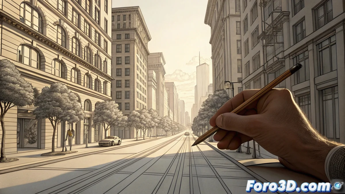 La perspectiva con puntos de fuga transforma dibujos planos en escenas con profundidad tridimensional. Comienzas estableciendo tu línea de horizonte, que representa el nivel de tus ojos, y colocas puntos de fuga sobre ella donde convergen todas las líneas paralelas. Desde estos puntos, trazas líneas guía que sirven como estructura para edificios, calles y objetos, asegurando que disminuyan de tamaño gradualmente hacia el fondo. Esta técnica no solo mejora el realismo espacial sino que también evita distorsiones comunes en dibujos sin perspectiva.