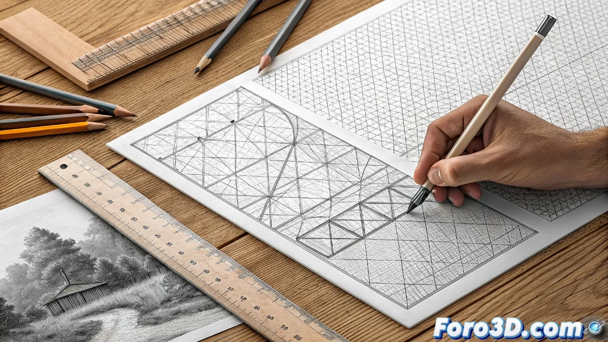 Para implementar esta técnica necesitas una imagen de referencia, papel de dibujo, regla y lápiz. Comienza trazando una cuadrícula idéntica sobre ambos soportes, manteniendo exactamente el mismo número de divisiones horizontales y verticales. La densidad de la cuadrícula puede variar según el nivel de detalle que requiera tu sujeto, siendo más recomendable comenzar con divisiones más amplias para practicar la ubicación de elementos principales antes de avanzar hacia subdivisiones más finas que capturen detalles específicos.