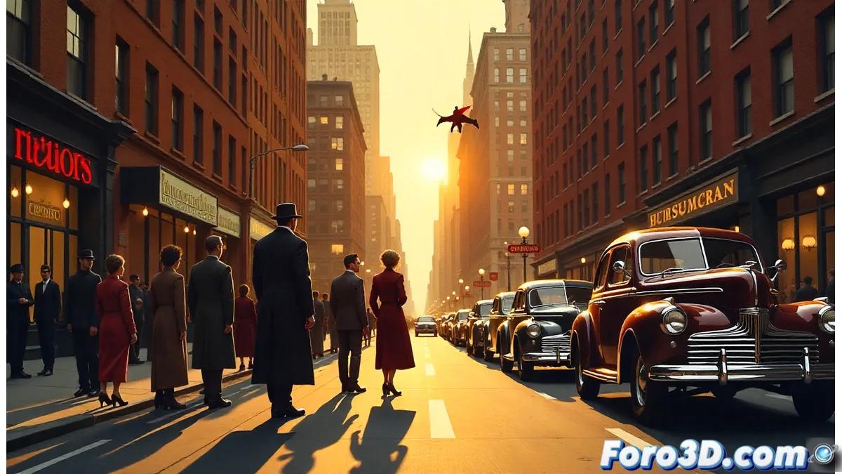 Alex Ross revoluciona el medio con su técnica de pintura al óleo y acuarela, creando ilustraciones que parecen capturar momentos fotográficos con un dramatismo cinematográfico. Cada viñeta está cuidadosamente compuesta con iluminación teatral y expresiones faciales detalladas que transmiten la emoción humana ante lo sobrehumano. Los fondos recrean meticulosamente el Nueva York de mediados del siglo XX, desde los rascacielos art déco hasta los apartamentos modestos, integrando perfectamente lo cotidiano con lo fantástico. Este enfoque convierte a los superhéroes en figuras casi mitológicas vistas desde la perspectiva de la calle.