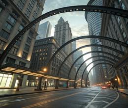 La curvatura en las líneas de perspectiva no es arbitraria sino que responde a principios matemáticos precisos donde las rectas se transforman en arcos que siguen trayectorias circulares o elípticas. Cada punto de fuga actúa como un polo magnético que atrae estas curvas, creando distorsiones controladas que mantienen la coherencia espacial. Este sistema resulta particularmente efectivo para representar arquitectura en vistas panorámicas, interiores amplios o paisajes urbanos donde las líneas rectas tradicionales crearían distorsiones anti-naturales en los bordes de la composición.