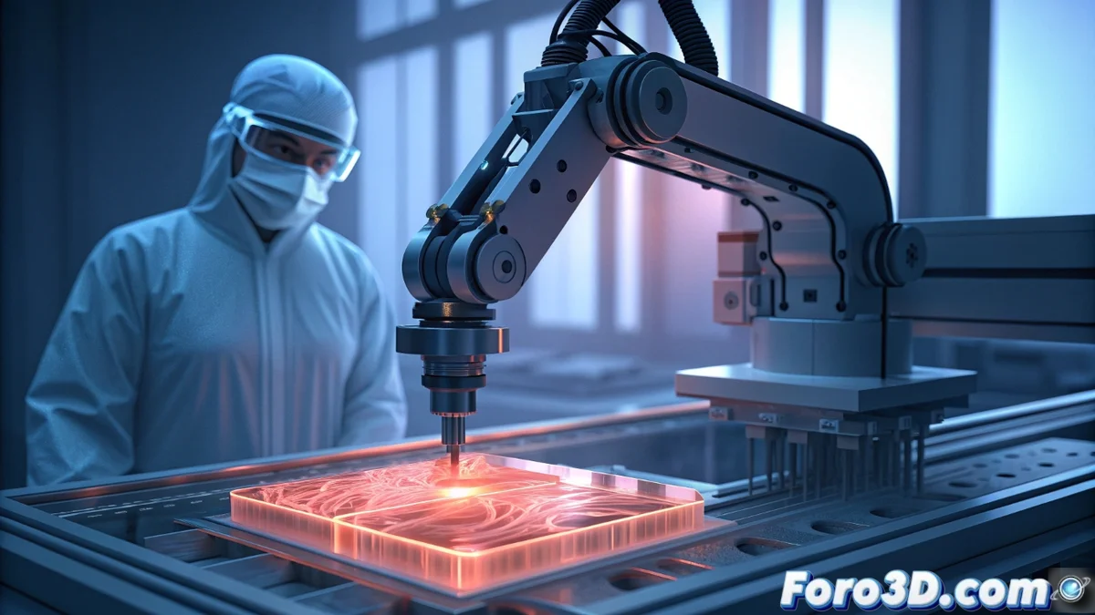 El material base proviene de tejido adiposo humano donado, que se procesa para extraer una matriz extracelular decelularizada. Este biomaterial, rico en colágeno y factores de crecimiento, sirve como tinta biológica. La impresora 3D deposita capas de este gel, mezclado con células vivas del paciente, para crear un andamio o parche personalizado que se aplica directamente sobre la herida.