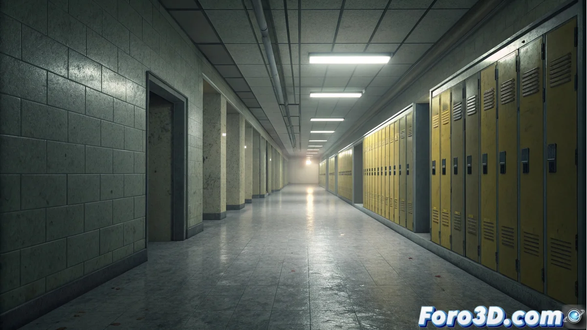 Los espacios liminales son lugares de transición que se perciben vacíos, como un pasillo escolar fuera de horario. Estos entornos generan una atmósfera onírica y solitaria, donde la nostalgia y lo surreal se mezclan. Blender permite construir y representar esta sensación inquietante mediante su herramienta Pencil 2D, que simula un estilo de animación dibujado a mano. El proceso busca capturar esa calma tensa y perspectiva alterada que define el concepto.