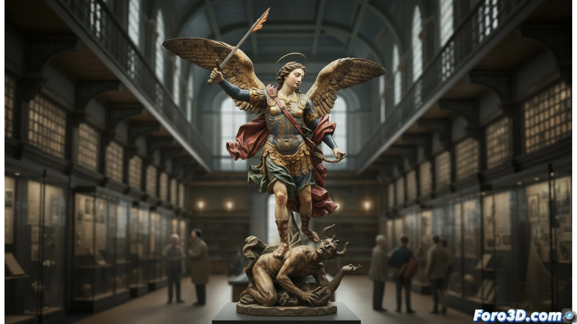 La pieza que ingresa en el Prado es un San Miguel Arcángel realizado en barro cocido y policromado. Esta escultura muestra el dominio técnico de Roldán en el manejo de la terracota y su habilidad para componer figuras de gran dinamismo y expresividad. El arcángel aparece en el momento de vencer al demonio, una iconografía muy recurrente en su producción que le permitía desplegar un intenso dramatismo barroco.