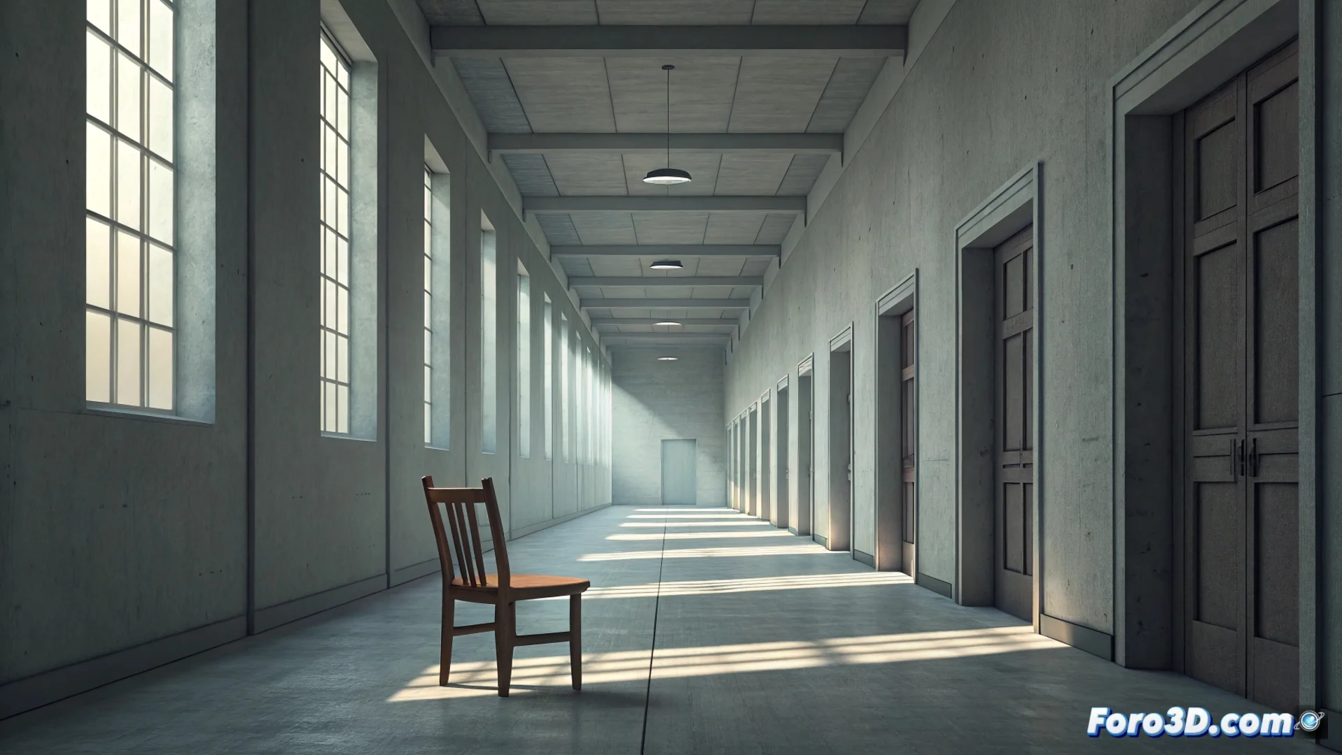 Al diseñar interiores o arquitecturas en 3D, modificar las proporciones estándar de los elementos construidos provoca una sensación sutil de desubicación. Puertas que superan los dos metros y medio de altura, ventanas excesivamente alargadas o escalones con una huella mínima de cinco centímetros rompen la escala humana esperada. Este efecto no busca ser grotesco, sino que perturba la percepción de quien observa la escena, creando una versión espacial del Uncanny Valley. El espacio parece familiar, pero algo en sus dimensiones no encaja del todo.