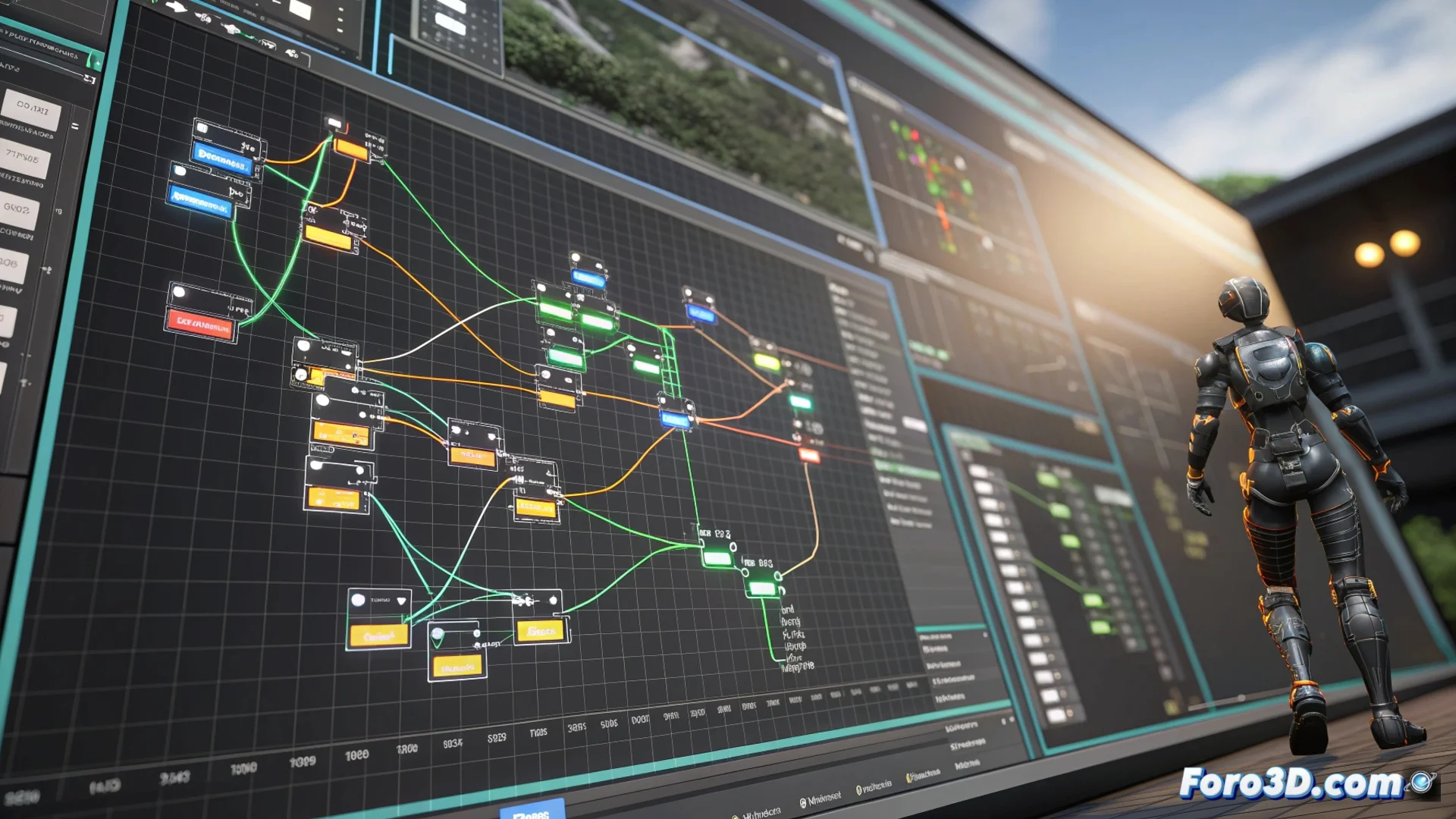 Unreal Engine incluye un sistema de programación visual llamado Blueprint. Este sistema permite crear la lógica del juego, definir interacciones y diseñar comportamientos complejos sin escribir código tradicional. Los usuarios conectan nodos en un gráfico para construir funcionalidades. Este enfoque visual hace que desarrollar sea más accesible para artistas, diseñadores y personas que no se especializan en programar.