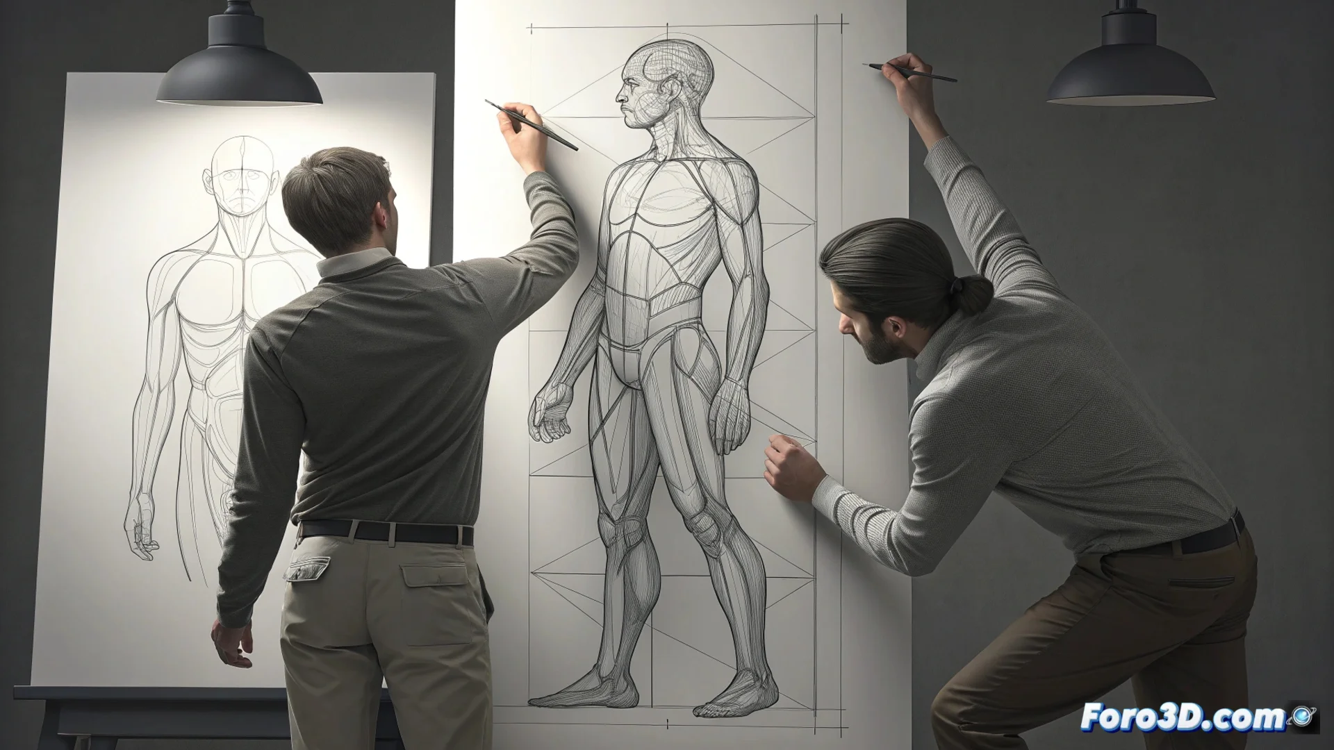 El segundo artista no ve el dibujo de la cabeza. Solo recibe las coordenadas precisas de los puntos donde deben ubicarse los hombros, marcadas en el papel. Con esta información limitada, su tarea es imaginar y dibujar el torso y los brazos, completando la conexión con la cabeza invisible y eligiendo una pose que considere lógica o interesante a partir de esos dos puntos de anclaje.
