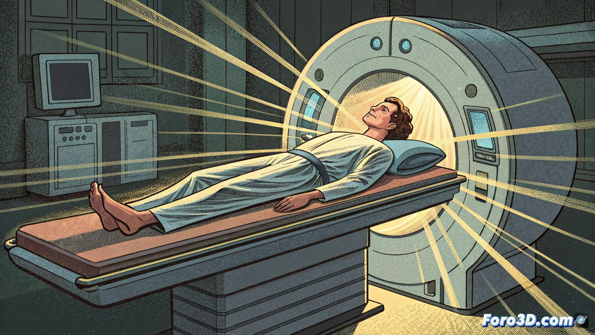 El paciente se acuesta en una mesa que se desliza hacia el interior de un anillo grande llamado gantry. Este anillo contiene un tubo de rayos X que gira a gran velocidad alrededor del cuerpo. Al girar, emite haces delgados de rayos X que atraviesan el cuerpo y son captados por detectores en el lado opuesto. El ordenador recibe estos datos y usa algoritmos matemáticos para construir una imagen detallada en dos o tres dimensiones.