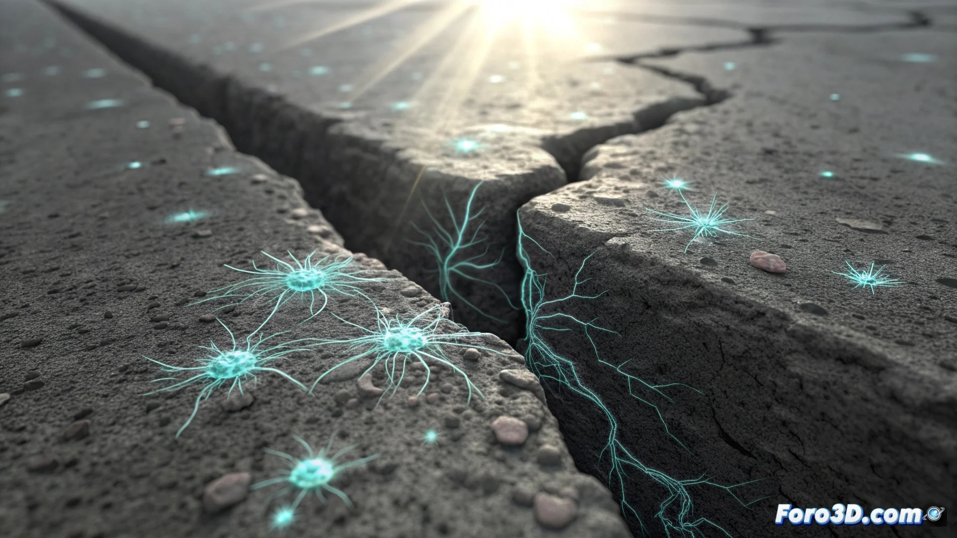 El mecanismo combina biología y química mineral. Las cianobacterias, como Synechococcus, usan el agua y el dióxido de carbono que penetran por la grieta. Mediante su metabolismo, aumentan el pH local y favorecen que los iones de calcio presentes en el hormigón formen calcita. Este biomaterial cristalino rellena progresivamente la abertura, restaurando parte de la resistencia mecánica.