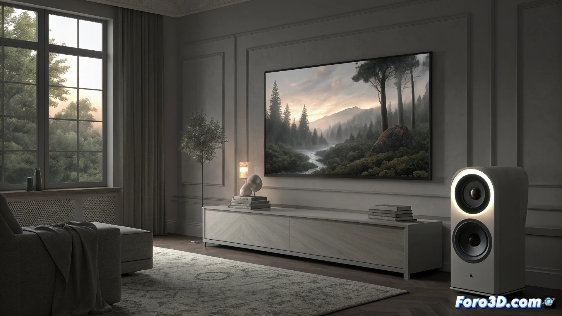 El segundo modelo, el OLED C, adopta un enfoque diferente. Su diseño se basa en una estructura de cristal y metal, con una forma orgánica y curva que pretende asemejarse a una escultura. Samsung describe su apariencia como fluida y escultural, destacando el uso de materiales premium para que el objeto destaque por sí mismo en la estancia sin necesidad de ocultarse.