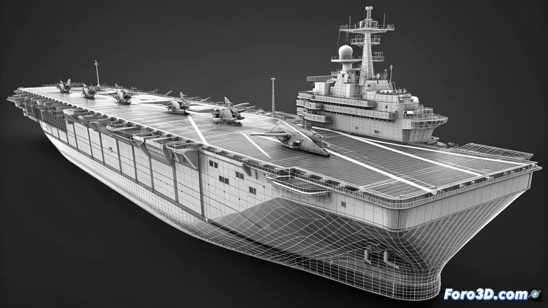 El buque mide 257 metros de eslora, 32 de manga y 8 de calado. Su característica más distintiva es la cubierta de vuelo continua, sin obstrucciones, y una isla grande y única ubicada a estribor. Incorpora dos ascensores de gran tamaño para mover aeronaves entre la cubierta y el hangar, además de radomos y antenas de sensores integrados. Esta configuración le permite gestionar un elevado ritmo de operaciones aéreas.