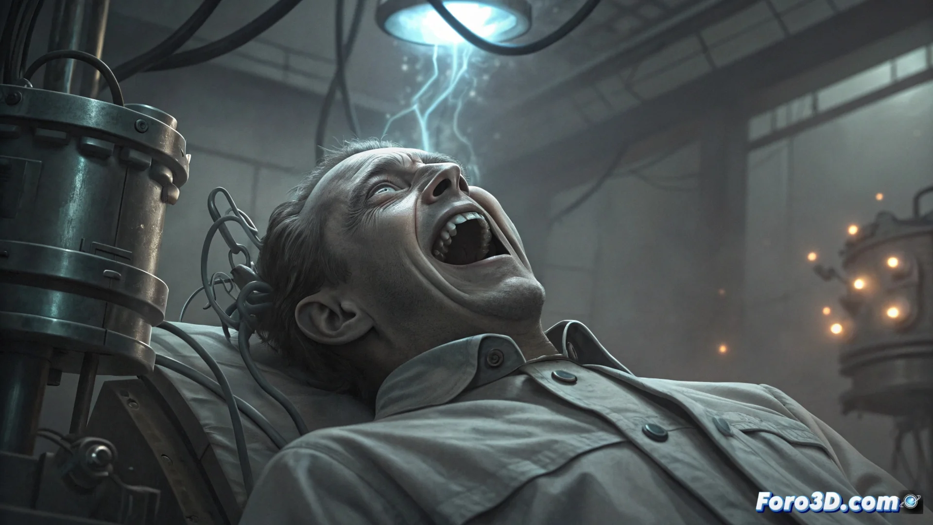 El experimento distópico prescinde de una sala pública. El sujeto de prueba yace conectado a una máquina compleja mientras duerme. Los hackers no reproducen la icónica escena del tren. En su lugar, cargan y proyectan un recuerdo visual simple pero poderoso: la imagen parpadeante de un cielo azul despejado. Este fragmento de memoria, considerado un dato prohibido en su realidad distópica, se transmite directamente a su corteza visual. La reacción del durmiente es inmediata y visceral, un destello de emoción pura que contrasta con el entorno tecnológico y frío del laboratorio.