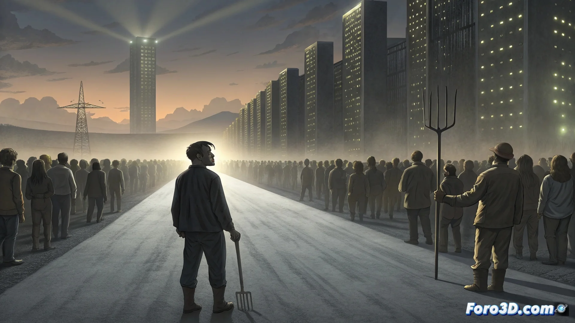 Un líder carismático, inspirado en los métodos de resistencia pasiva, convoca a una multitud. No marchan hacia el mar para recoger sal, sino hacia el simbólico Océano de Datos Global, el punto físico donde se concentran los grandes nodos de transmisión. Su protesta es caminar en completo silencio, sin dispositivos, demostrando que la humanidad precede a la máquina. La tensión narrativa crece a medida que se acercan al lugar prohibido, vigilado por drones y fuerzas de seguridad del imperio.