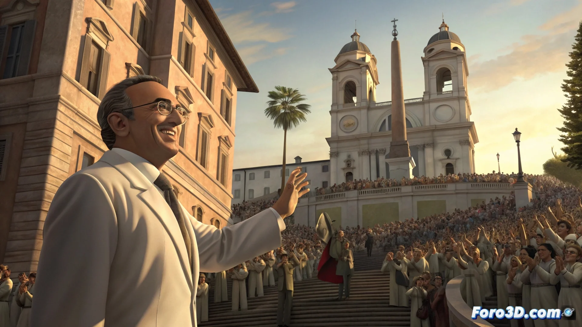 El conductor Carlo Conti elige la emblemática Piazza di Spagna en Roma para presentar el spot promocional del próximo Festival de Sanremo. La grabación ocurre en la escalinata de Trinità dei Monti, un lugar que suele albergar eventos culturales y de moda. La producción reúne a un numeroso grupo de personas que corean y celebran, creando una atmósfera festiva que anticipa el espíritu del famoso concurso musical italiano.