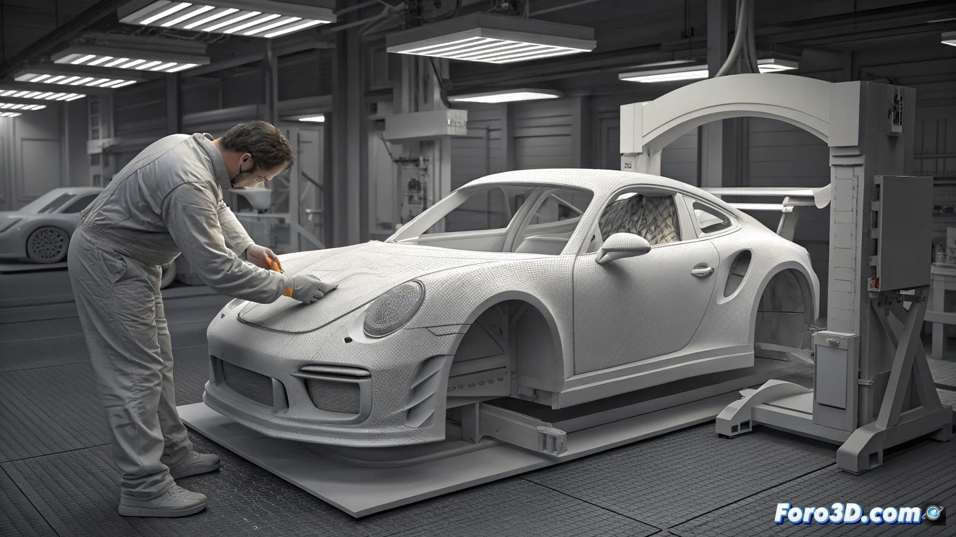 Un equipo de entusiastas y expertos en fabricación digital construye la carrocería completa de un Porsche 911 GT3 RS a escala real usando impresión 3D. El proyecto demuestra el potencial de esta tecnología para fabricar piezas de gran tamaño y complejidad geométrica. Emplean impresoras de filamento fundido de gran formato para producir los paneles, que luego ensamblan y preparan para su acabado final.
