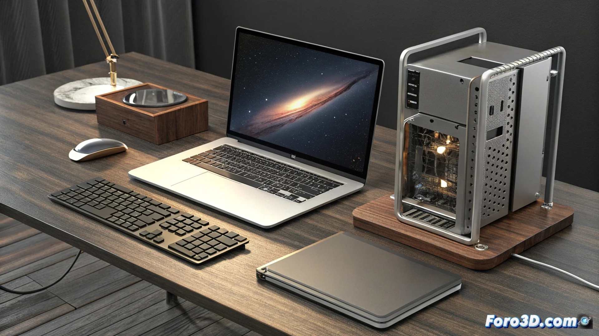 El Executive es un portátil de 14 pulgadas con una pantalla de alta resolución y tasa de refresco de 120 Hz, impulsado por un Intel Core ULTRA 7 255H. Su chasis ligero, de 1.2 kg, soporta memoria DDR5 y PCIe 5.0. Para los que necesitan más potencia de escritorio, el Kymera Woodline permite elegir entre procesadores AMD Ryzen con 3D V-Cache o Intel Core Ultra, ampliar la RAM hasta 192 GB y acoplar tarjetas gráficas de AMD, NVIDIA o Intel.