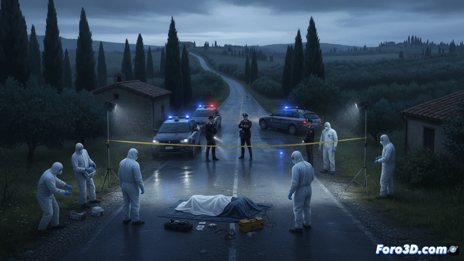 Los agentes de la Policía Local de San Giorgio Ionico acuden al lugar tras recibir una llamada de alerta. Al llegar, confirman la presencia del cadáver de un hombre, cuya identidad aún se desconoce. Los investigadores proceden a acordonar la zona para recoger pruebas y buscar cualquier evidencia que pueda ayudar a reconstruir lo sucedido. La vía permanece cortada al tráfico durante varias horas mientras los técnicos realizan su trabajo.