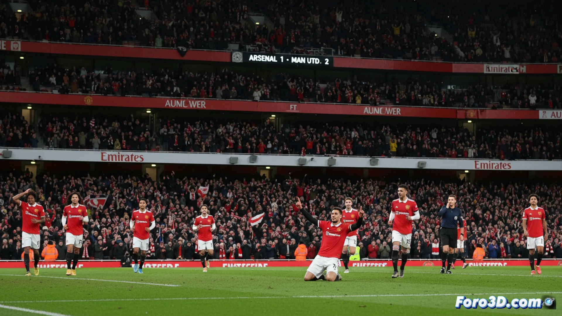 Después de un primer tiempo equilibrado con pocas ocasiones claras, el encuentro estalla tras el descanso. El United, más vertical, logra marcar el gol de la victoria en una jugada rápida que culmina con un remate cruzado. El Arsenal reacciona y presiona, pero se topa con una defensa visitante sólida y un portero decisivo en los minutos finales. El árbitro añade polémica al no señalar un posible penalti local en los instantes de mayor desesperación del equipo de casa.