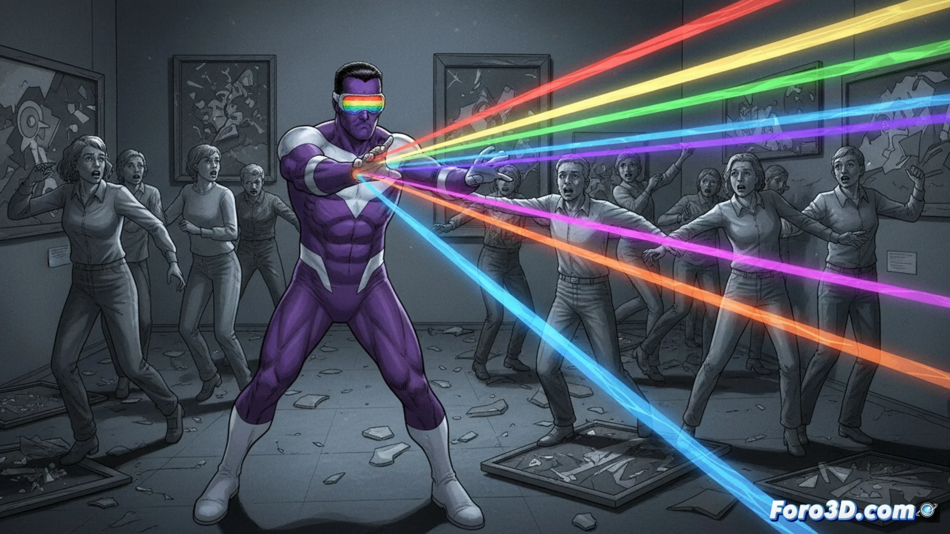 La habilidad central de Rainbow Raider reside en manipular el espectro de color. Sus gafas emiten haces de energía cromática que, al impactar en una persona, provocan un estado emocional extremo vinculado a ese color específico. Por ejemplo, la luz roja puede desatar una rabia incontrolable, mientras que el azul induce una profunda tristeza. Este poder le sirve para distraer a sus objetivos o para crear caos, facilitando sus robos sin necesidad de enfrentarse físicamente a superhéroes veloces como Flash.