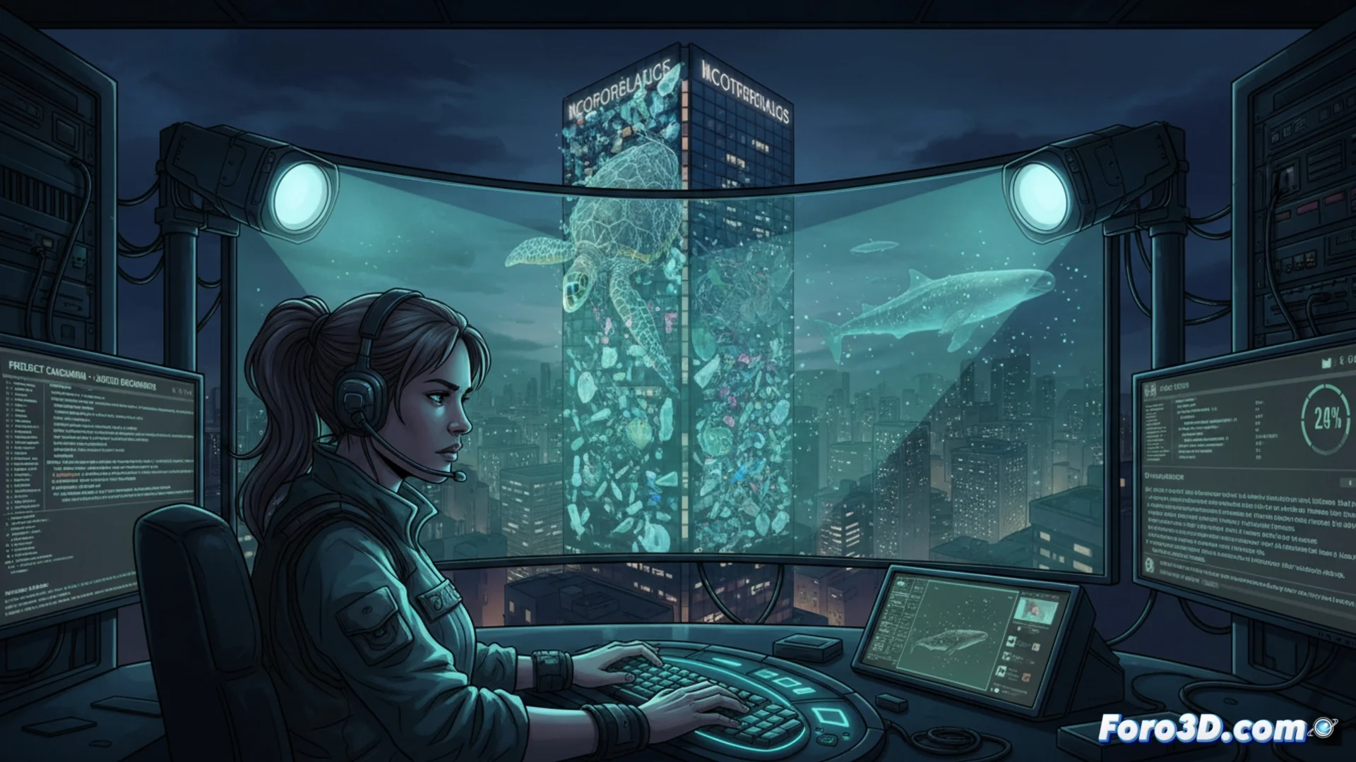 Carson probablemente emplearía drones equipados con proyectores para mostrar imágenes impactantes de la contaminación por plásticos en los edificios de las grandes corporaciones durante sus eventos clave, como juntas de accionistas. Esta acción buscaría avergonzar públicamente a los responsables y convertir sus sedes en pantallas que muestren las consecuencias de sus actos. Paralelamente, colaboraría con hackers éticos para filtrar informes internos sobre el impacto ambiental que las empresas intentan ocultar.