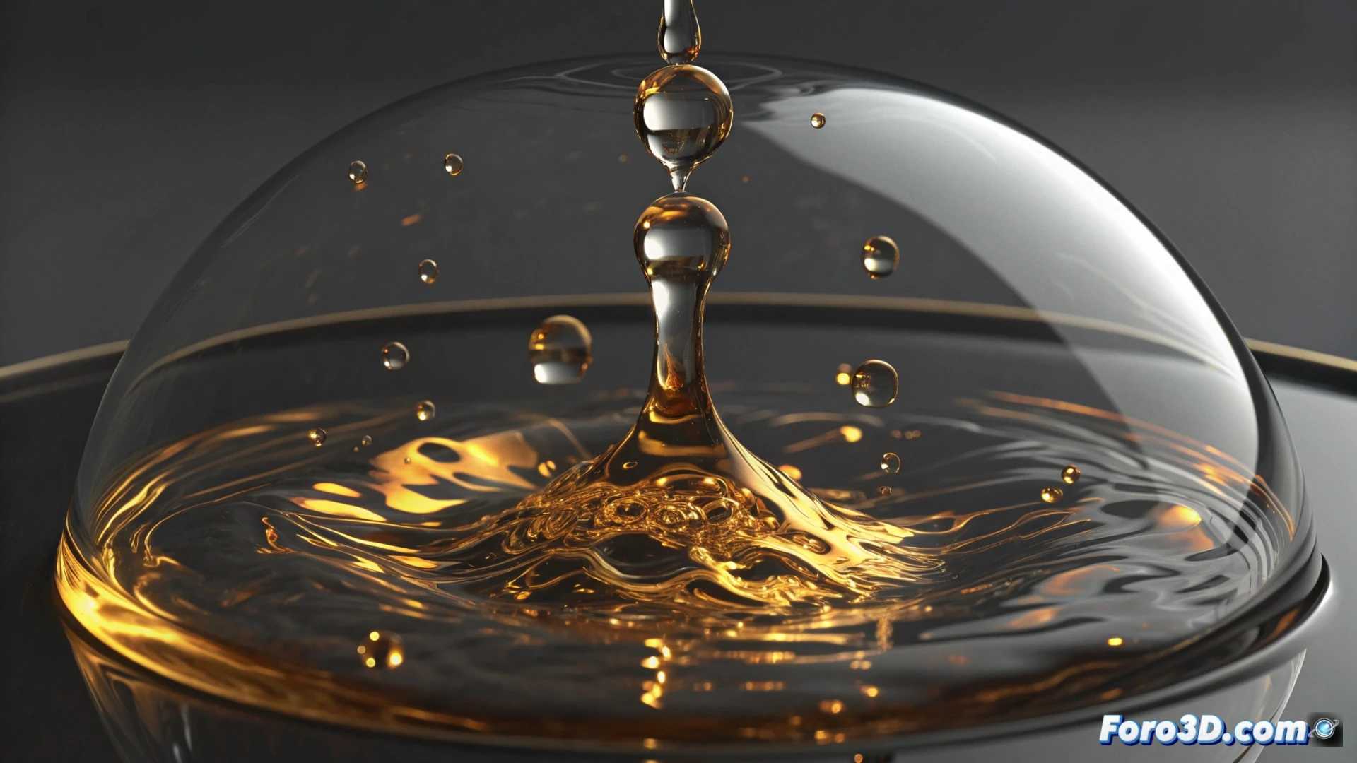 El render es crucial. Usa un motor como Physical o Octane si está disponible. Configura muestras altas para reducir el ruido en las reflexiones. Añade un entorno con un HDRI para que el metal refleje detalles realistas. Juega con la iluminación para acentuar las curvas y la viscosidad del fluido. Un post-proceso sutil con Glow puede ayudar a resaltar las zonas más brillantes y calientes de la simulación.