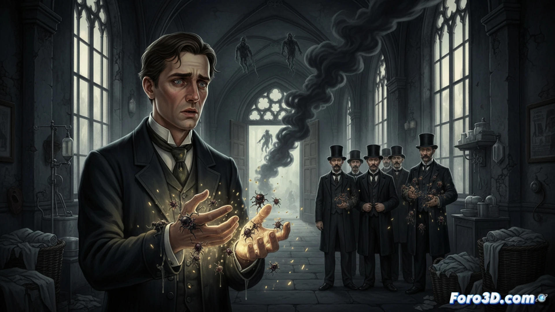 La película convertiría su lucha científica en una batalla épica visual. Estas entidades sombrías viajan en las manos de los médicos que no se lavan. El acto de lavarse las manos con agua clorada se representa como un rayo de luz purificadora que desintegra a los monstruos invisibles. Esta metáfora visual busca hacer tangible su teoría para el espectador, contrastando la verdad que él ve con la ceguera del establishment.