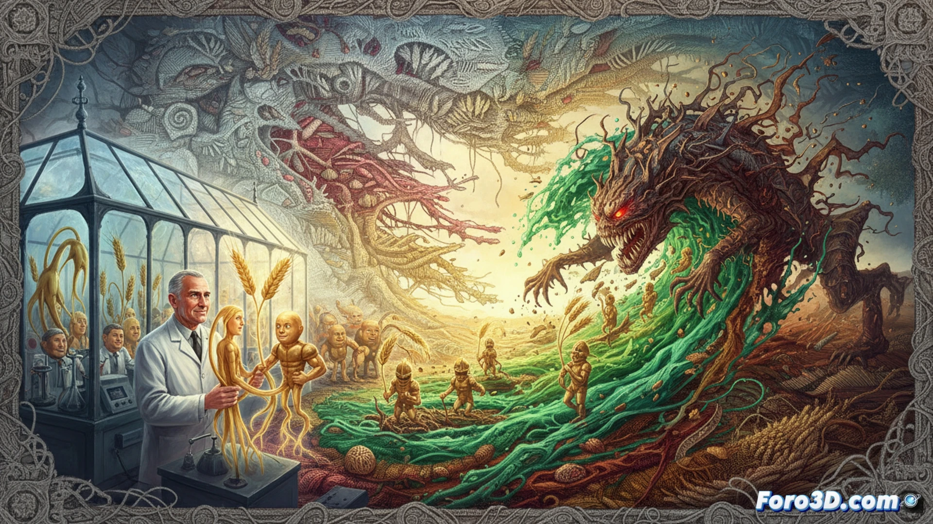 El conflicto principal surge contra la roya, una plaga que se visualiza como una criatura hecha de óxido y espinas. Esta bestia amenaza con devorar el tapiz. La película mostraría la lucha épica entre la nueva vida que genera el trigo dorado y esta amenaza destructora, simbolizando la batalla científica real contra la enfermedad.