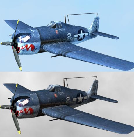 Este es un caza que llevo haciendo desde hace un tiempo, las hélices aún están quietas, pero antes de hacerles el efecto de movimiento me gustaría que me lo criticaran un poco.