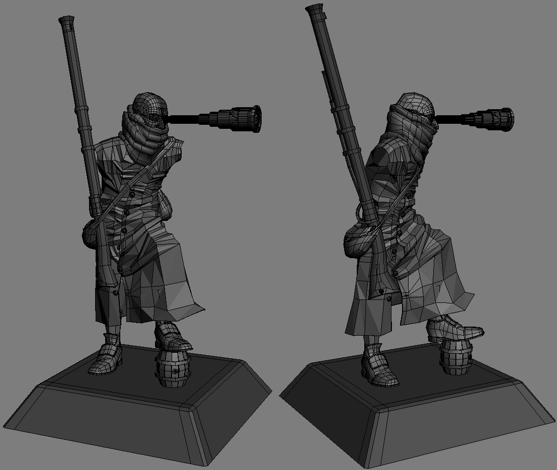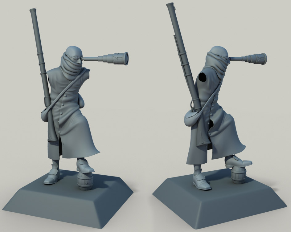 Quería hacer algo rápido antes de empezar con otra mujer mitológica. Solo voy a modelar, un fusilero grifon de confrontation (un juego tipo Warhammer). Aquí tenéis la referencia y el proceso. Faltan los brazos (obvio), las dos puntas de la bufanda y probablemente acabar de retocar la ropa. A ver qué os parece.