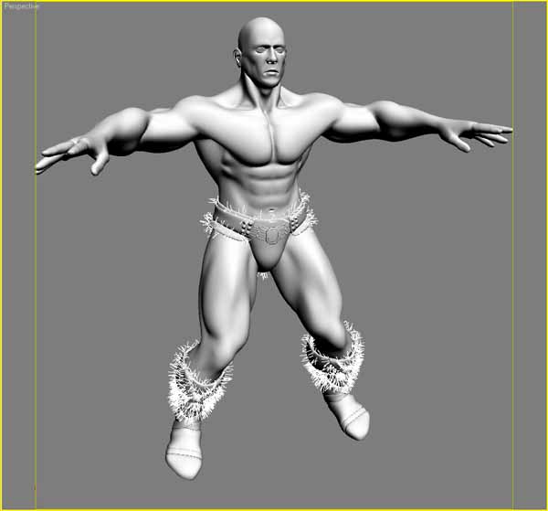 El personaje incluye músculos internos, un modificador, que algunos conocereis, el skin Morph para hacer modificaciones de los puntos de la malla en diferentes posturas de los huesos. He añadido pelo, y algo de textura, renderizado con Vray en max7. Os pongo la malla algo insinuada por si os interesa. Os pido que me digáis sin contenciones todo lo que no os guste. Por supuesto no está acabado, y por favor no os riáis de la postura esa tan suguerida, es una buena forma de ver cómo se modifica la malla con el skin (contorsionando un poco el personaje).