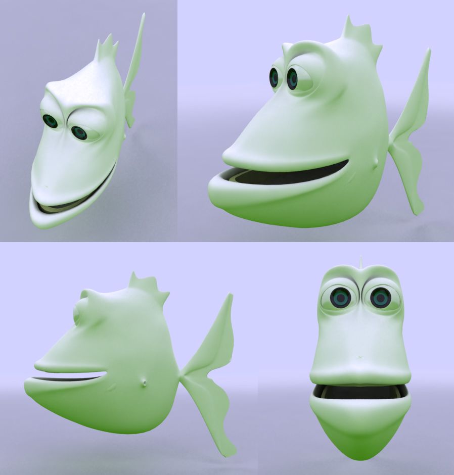 Interesante pecesito bocon si lo miras de frente puede parecerse a una rana oye creo que puedes darle otro uso además de un pez en cuanto a la imagen está muy bien modelado los felicito.
