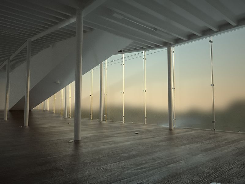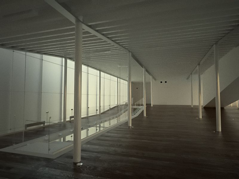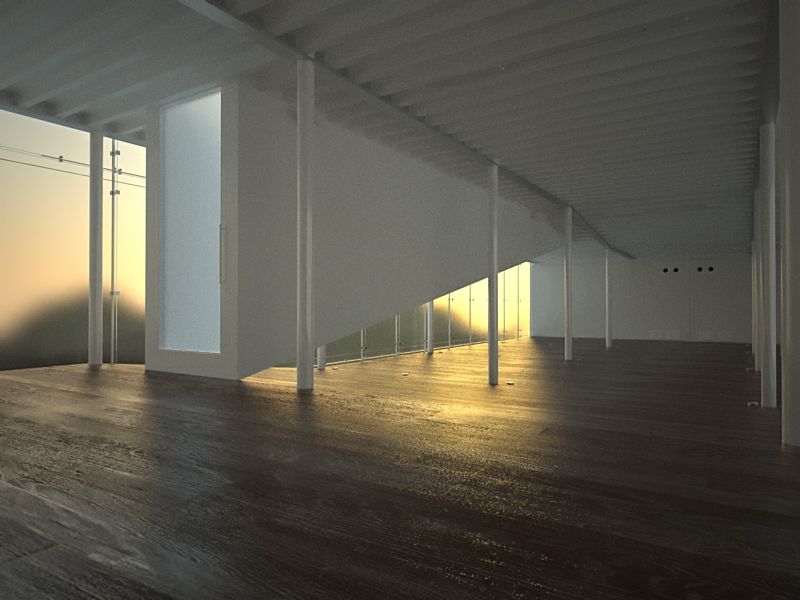 Muchas gracias, en cuanto a lo de los pilares, es necesario que atraviesen las vigas porque llegan a la planta superior (esta sería la primera y hay 3), en cuanto al Bump, es una mezcla entre el Bump y el especular utilizado, gracias por las críticas, en cuanto al tiempo de render, 6 horas.