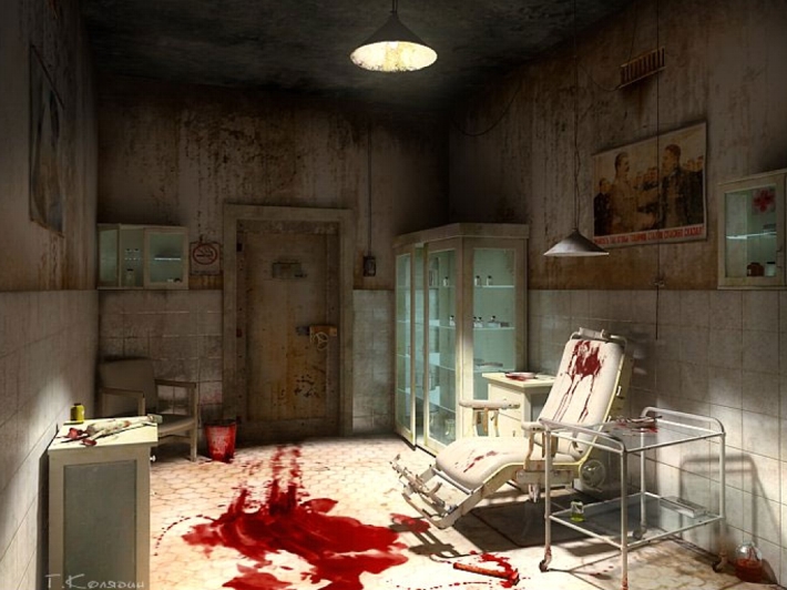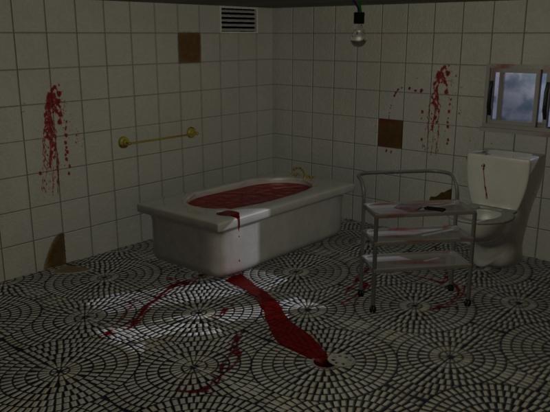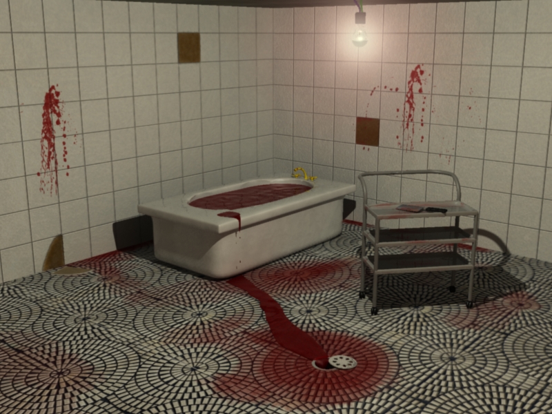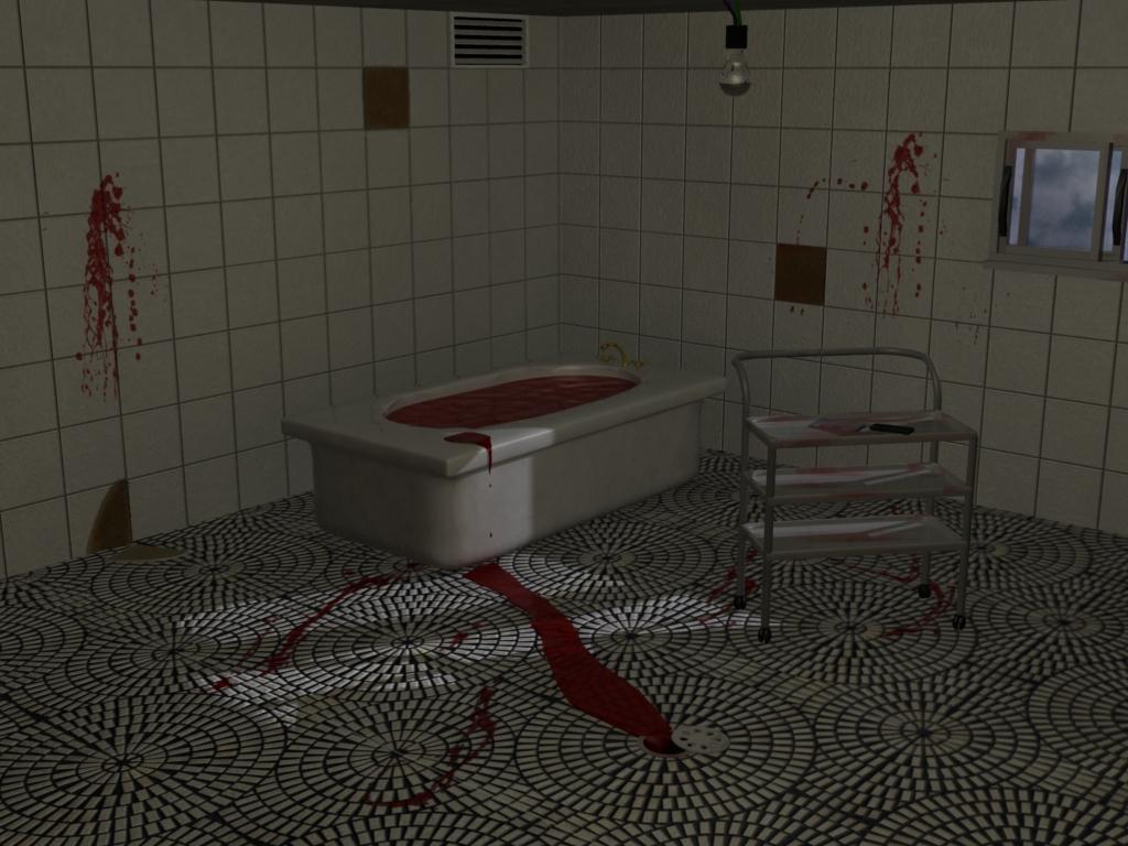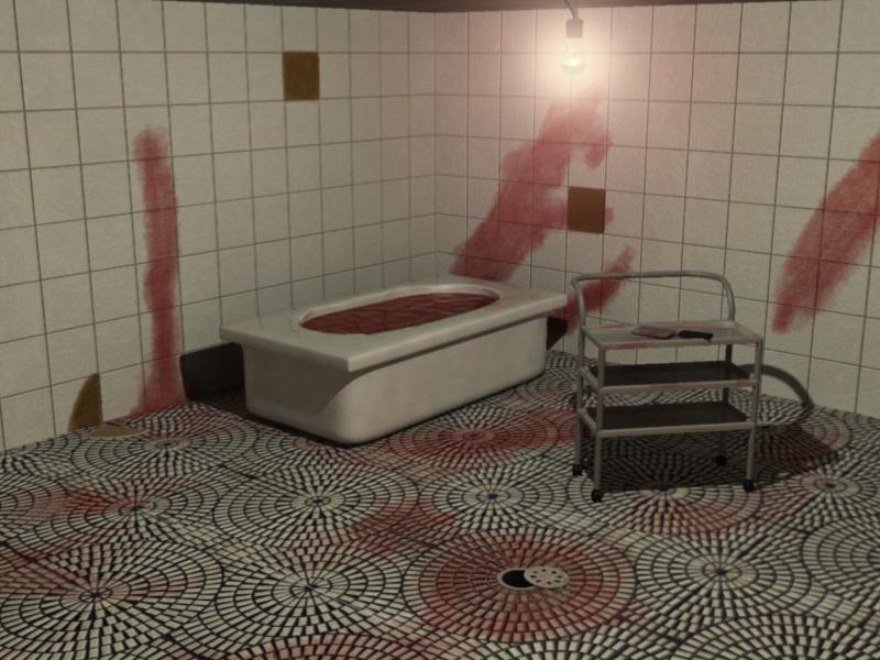 De 10 man, yo soy nuevo en 3ds Max, no entiendo mucho, pero ta bueno el baño. Fíjate cómo se puede hacer para que la iluminación no sea tan pareja. Quizás que la bañera y las paredes del fondo no estén a la misma intensidad que la parte del piso donde se encuentra el manchón de sangre. Quizás bajar intensidad a las paredes y a la bañera, no sé, si te interesa hacerlo me encantaría que comentes como lograste así aprendo, gracias.