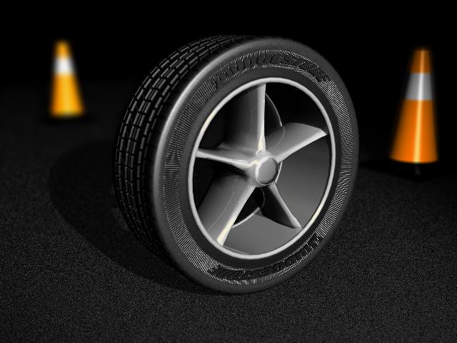 Vaya. Yo de ti buscaría imágenes de productos similares para estudiar la luz, por ejemplo, al neumático le pondría una luz detrás para marcar el perfil y separarlo del fondo. Tengo alguna imagen parecida en casa, si puedo luego la publico. Firestone te ha encargado la imagen?