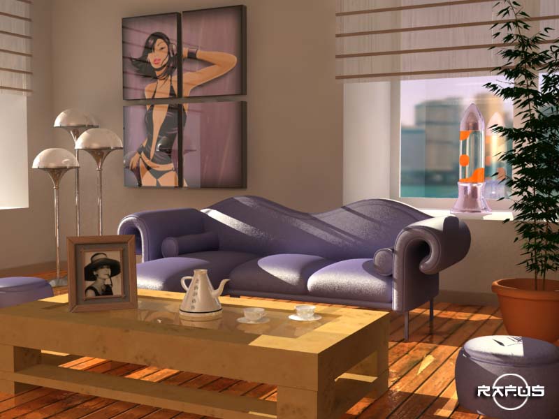 Muy bien en general, como ya te han dicho el suelo falla, el cuadro tendría que tener menos reflexión (este tipo de cuadros no suelen llevar vidrio) y falla también el juego de café de la mesa.