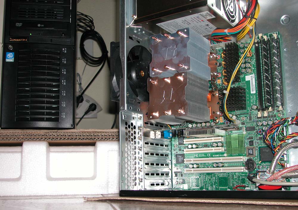 Cabfl mencionaste: Si tienes Xeon nocona 800, pues existe otra solución y es poner disipadores de cobre de 900 gramos cada uno, pero necesitas una placa que permita fijación de disipadores directamente a la torre, porque si los fijas solo a la placa, la rompes irreversiblemente.