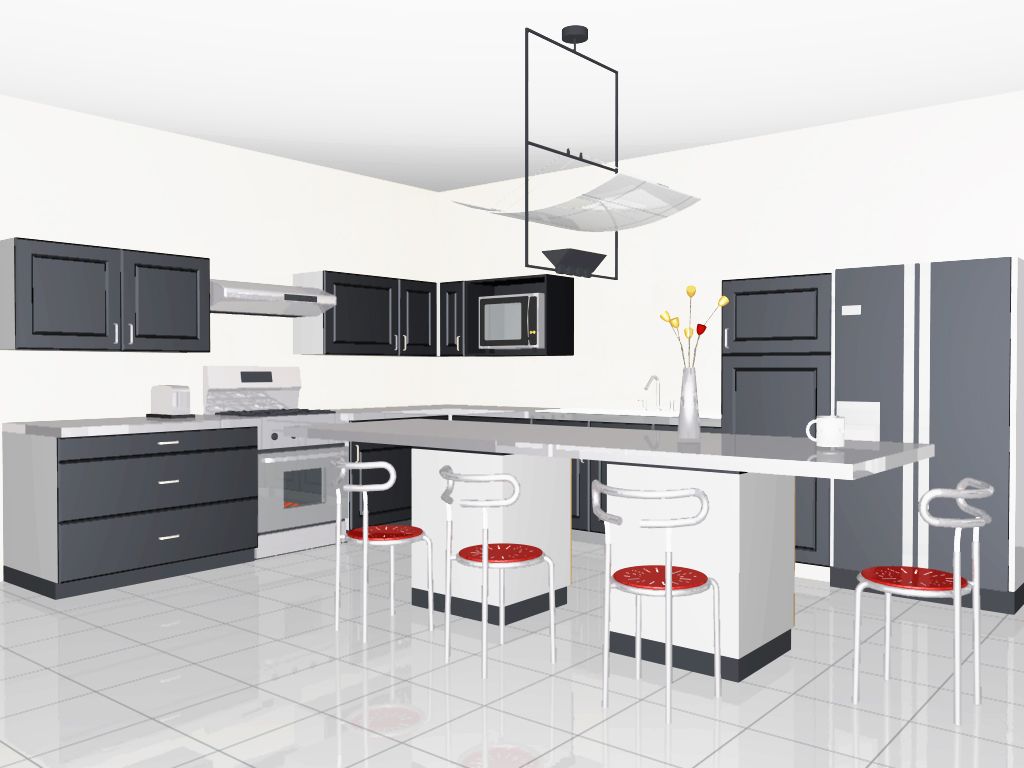 Apuntando además al diseño (aunque coincido con los comentarios de iluminación) el cielorraso se ve muy alto (como 3 metros) y las alacenas un poco bajas, las puertas las haría la mitad de anchas, son más cómodas de 35cm que de 70cm, eso igualmente que lo critiquen en la escuela de diseño.