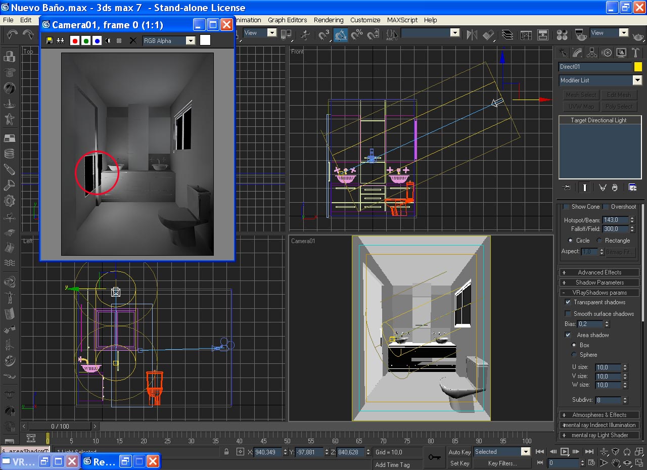 Estoy haciendo ahora otro interior, otro baño, y de nuevo tengo el mismo problema, la luz que entra por la ventana y que debería quemar la pared, hace.
