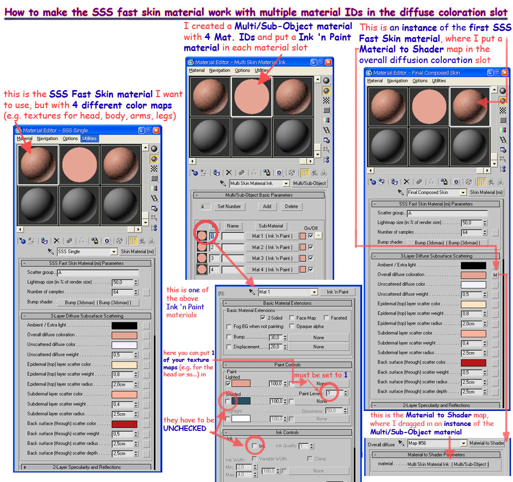 No sé si alguien lo habrá intentado, pero el otro día estaba realizando pruebas con los materiales s y me percaté de que no son compatibles con los multi/subobjeto (se pierde el efecto de s del material), bueno el punto es que buscando encontré la forma de hacerlo funcionar de forma correcta y ante la duda lo comparto con el foro por si alguien llega a tener este problema que de seguro ya fue consultado en alguna oportunidad o será motivo de pregunta (sin duda es algo extraño el método, pero funciona). Saludos.