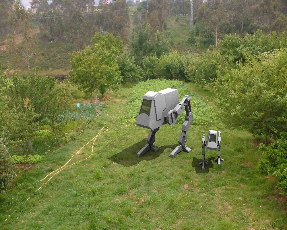 Este es un robot inspirado en el atpt de Star Wars y lo é integrado en mí leira y el suelo es una textura, que opináis?