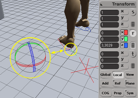 Así que deduje que debía ser cosa del objeto [/i](pues solo ocurre en este objeto y en el up-Vector de la pierna izquierda)[i]. Después cargué una escena antigua (en la que estaba bien, había animado el modelo, y eso no estaba así), cuando. Oh, sorpresa. ¿el gizmo también sale fuera de lugar? Esto me descarto bastantes posibilidades de que el problema estuviera en la escena. Debe ser cosa de algún parámetro del XSI pensé. Pero entonces. ¿porque solo afecta a ese objeto?