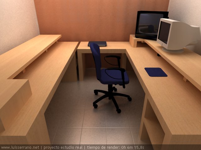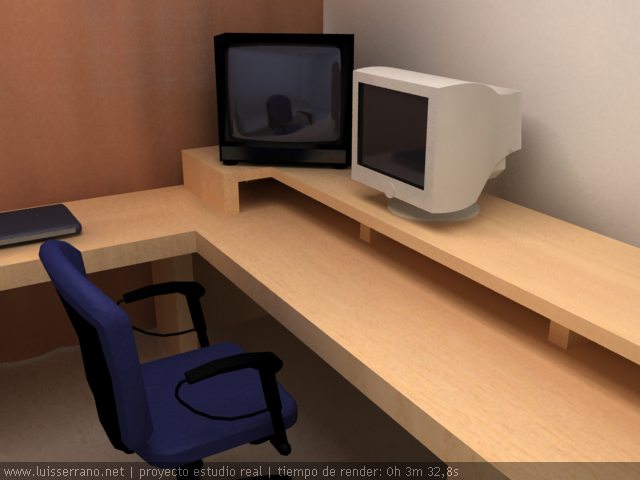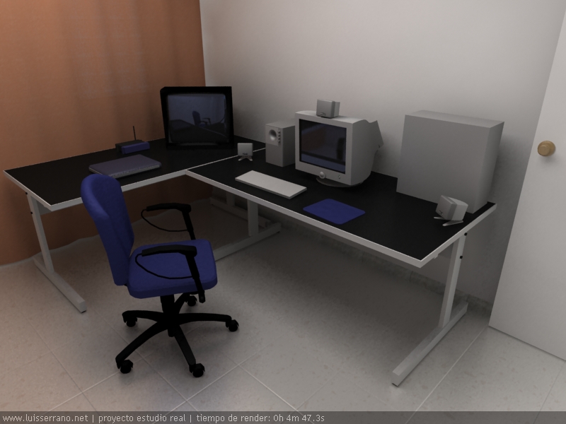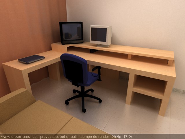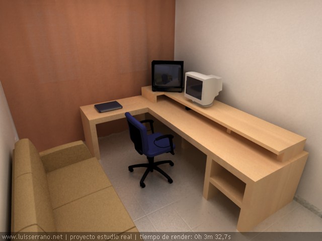 Tengo que decir que la silla de estudio y el sillón no los he modelado yo, son de una librería que me pasaron hace bastante tiempo y ahora estoy usando a veces. Por supuesto el resto es mío.