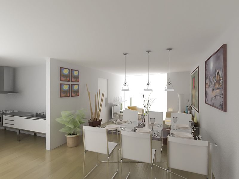Para que tu trabajo sea mejor aún deberías aumentar el nivel de detalle en los muebles, sobre todo en los sofás, por lo demás chapó, aunque no me gusta demasiado el ruido en las imágenes.