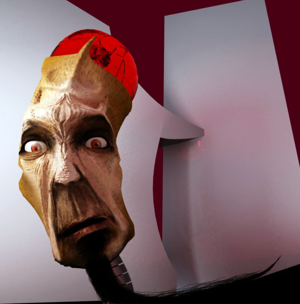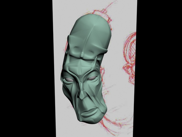 Pues este es trinitrus, o su cabeza. Lo estoy modelando en 3dsmax y ZBrush. La segunda imagen es de antes de pasarlo a ZBrush.