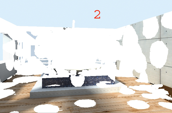 3 : pensé que era obvio que pasara ya que había un material nuevo en la escena no computado, así que, renderizo sin usar el mapa de irradiancia (Single Frame) y me sucede casi lo mismo, con manchas más pequeñas.