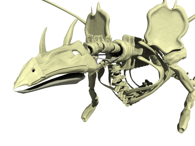 En fin, no sé si lo entiendes. No tienes que copiar el esqueleto de otro animal al pie de la letra, simplemente debes usarlo como referencia incluyendo deformaciones, añadidos y/o omisiones para poder ajustarlo a tu idea inicial.